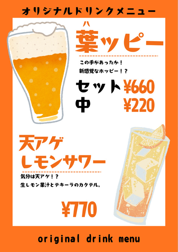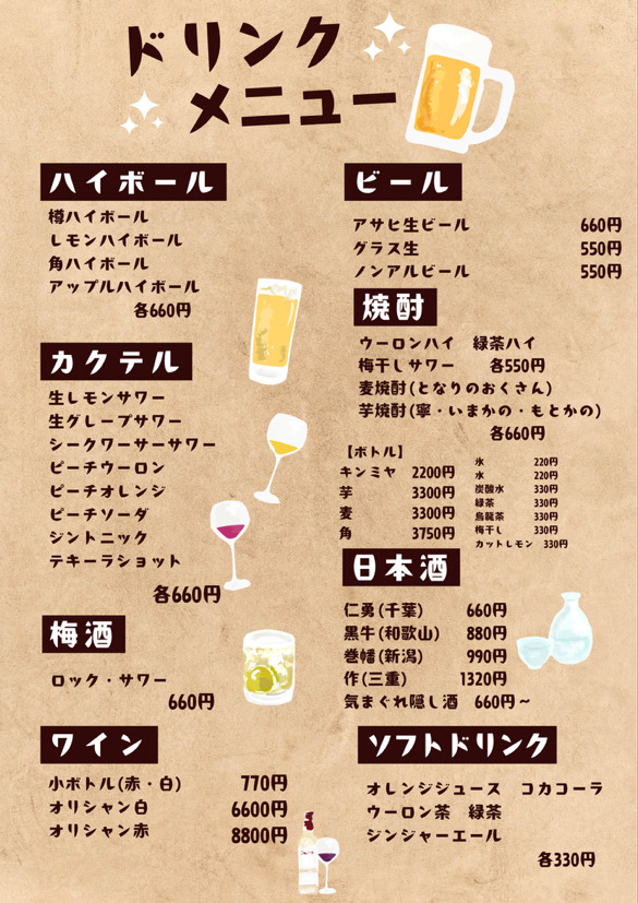 ドリンクメニューも豊富です。
