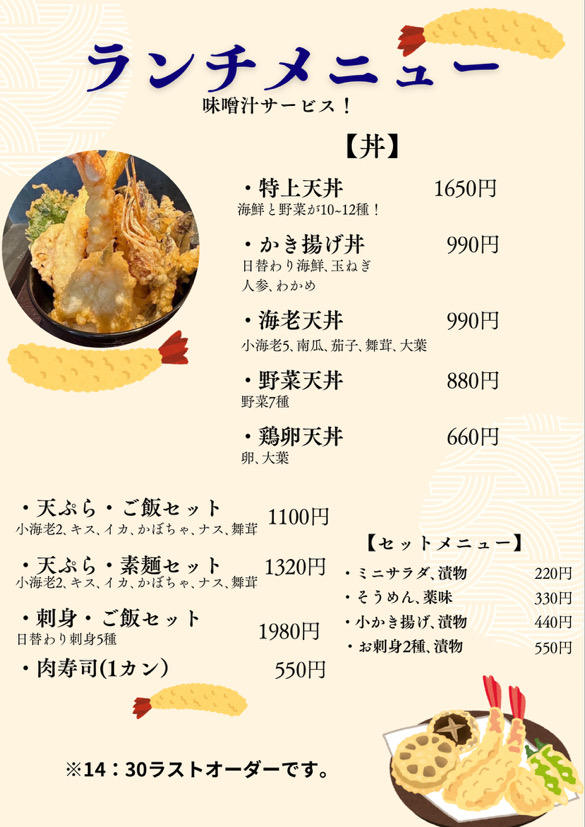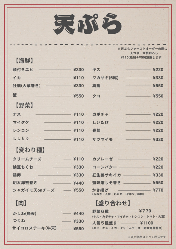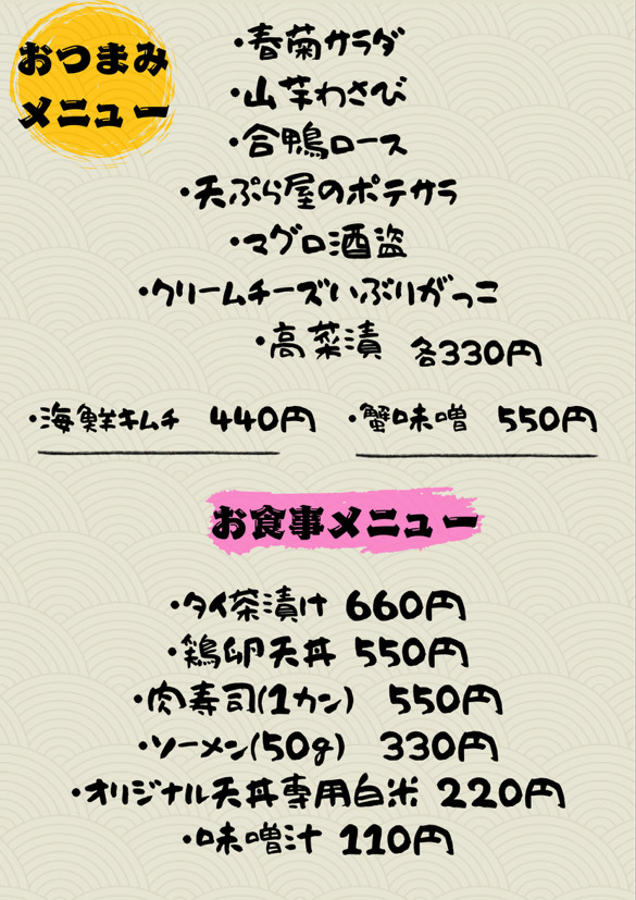 天ぷらだけじゃない!メニュー